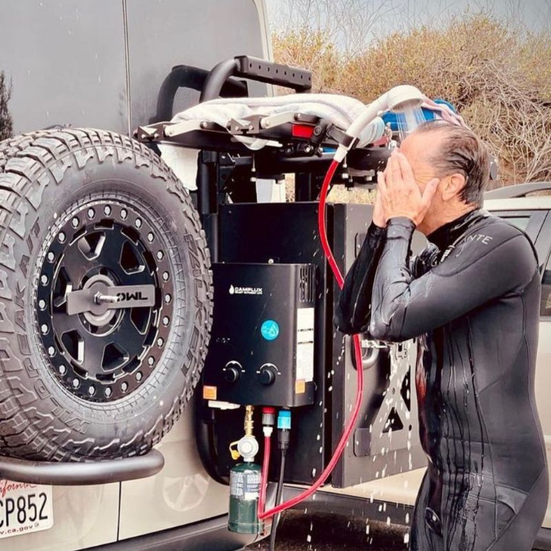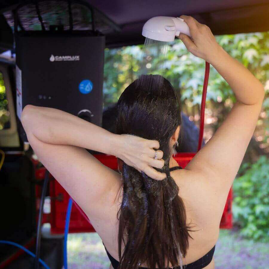 Whether for camping showers, RV adventures, or outdoor exploration, our portable and tankless system delivers hot water on demand.